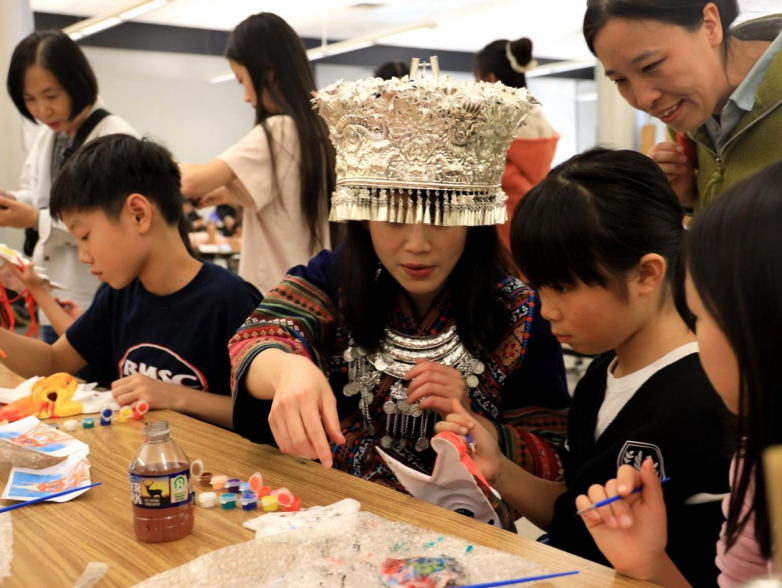 非遗传承人现场指导美国学生体验贵州非遗DIY