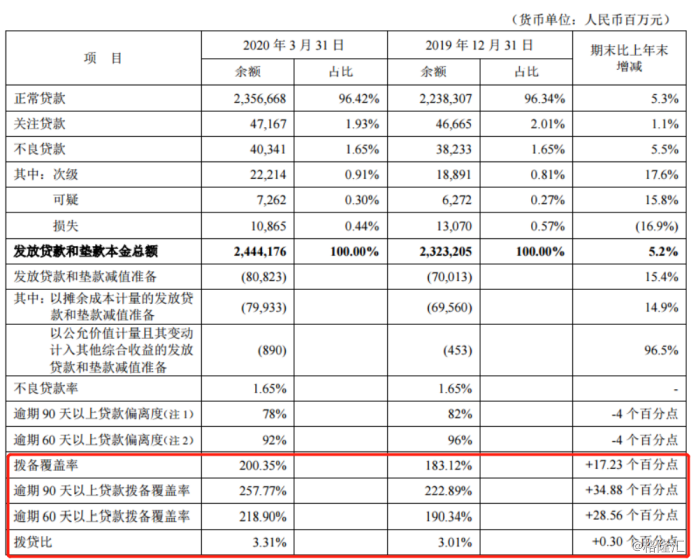 与之同时,该行的贷款拨备覆盖率200%,同比增长17%,表示其风险抵补能力持续增强。其中逾期 90 天以上贷款拨备覆盖率258%,同比增长34.88%,逾期 60 天以上贷款拨备覆盖率219%,同比增长29%。